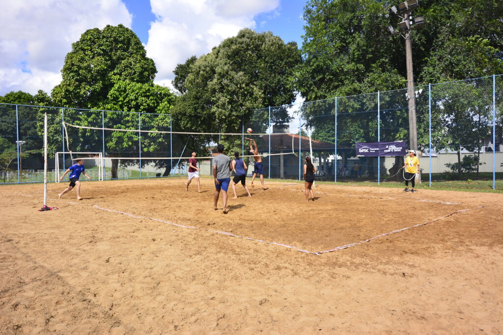 Logo nas primeiras horas da manhã, a movimentação já era intensa no Sesc Bosque. Os torneios esportivos abriram o dia com partidas de Fut7 no campo de grama sintética e o torneio de vôlei de areia na quadra da unidade, estendendo-se até o fim da tarde. Outras atrações como o banho de piscina e a Arena Game, com jogos eletrônicos e competições virtuais, atraíram especialmente o público jovem.