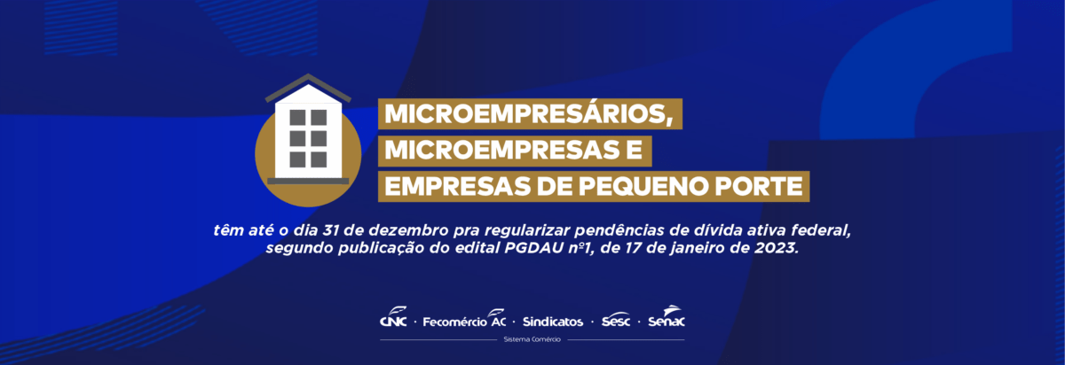 Microempresários, microempresas e empresas de pequeno porte têm até o dia 31 de janeiro para regularizar pendências de dívida ativa federal, segundo relembra o assessor da presidência da Fecomércio-AC, Egídio Garó. O edital PGDAU nº1, de 17 de janeiro deste ano, divulgou propostas para adesão à liquidação de créditos inscritos em dívida ativa, ainda segundo informa o assessor. Quem tiver interesse, deve acessar o REGULARIZE, disponível no endereço eletrônico www.regularize.pgfn.gov.br