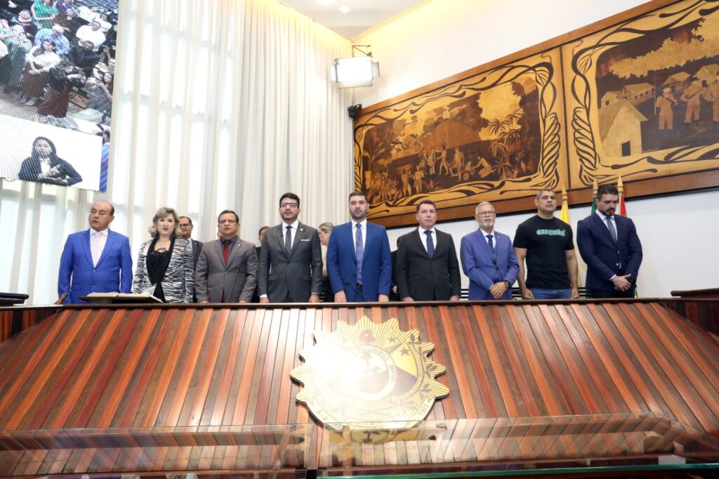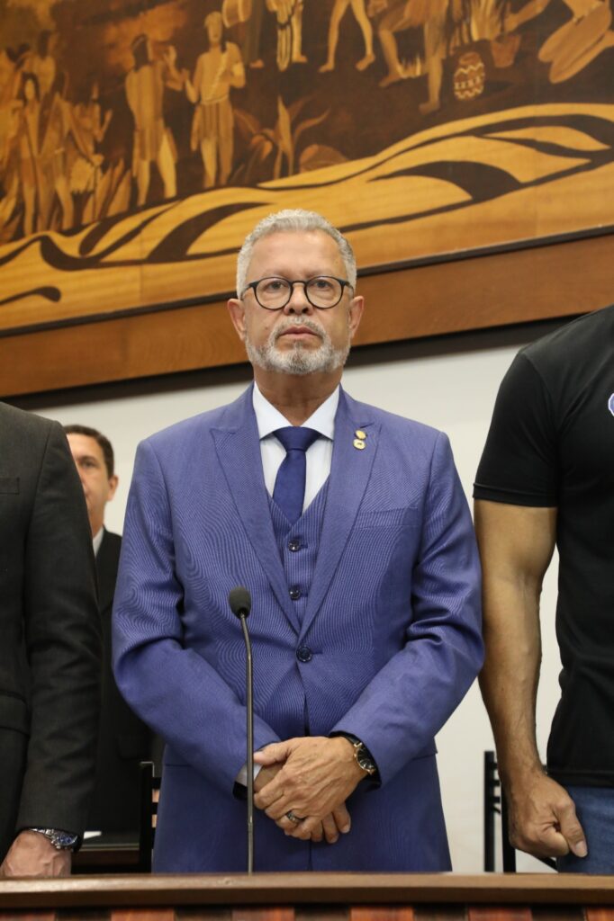 A homenagem foi entregue pelo governador Gladson Cameli, acompanhado do deputado estadual Afonso Fernandes, idealizador da sessão, do presidente da Aleac, Nicolau Júnior, e do deputado Luiz Gonzaga.