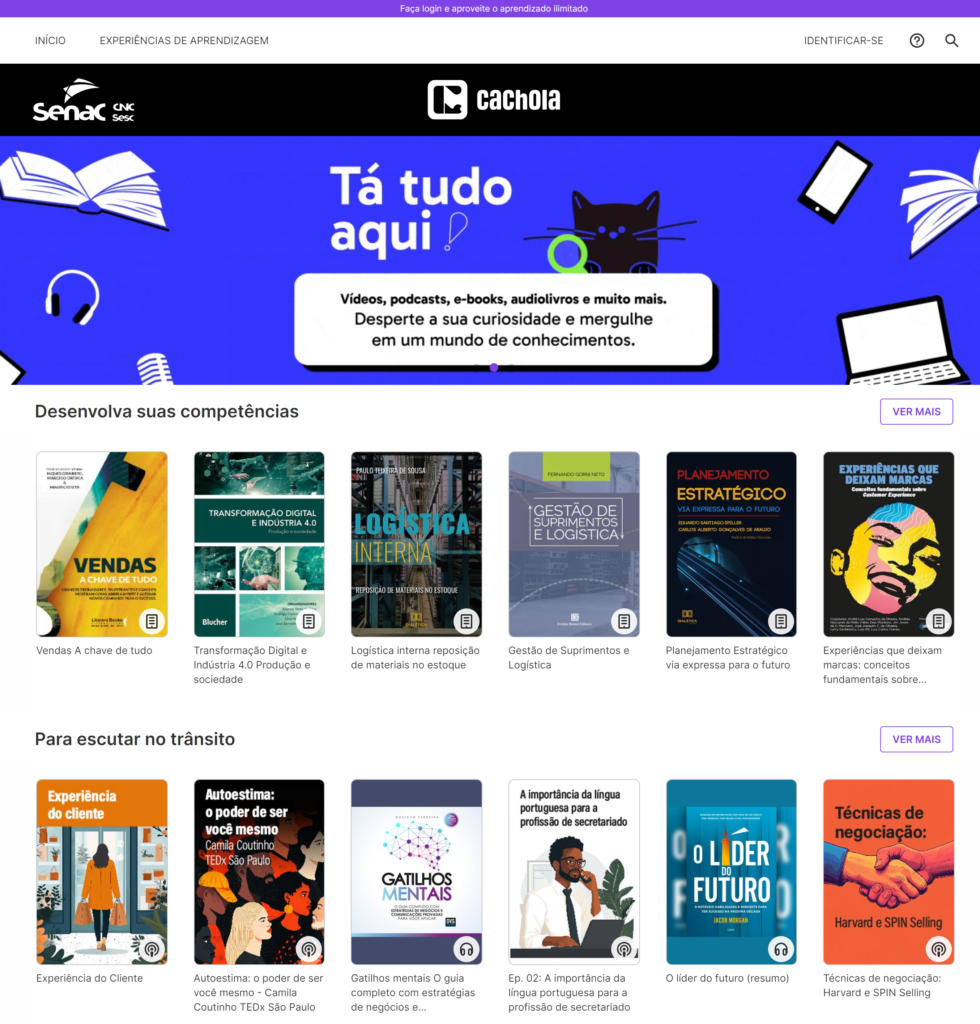 Com o objetivo de potencializar a relação entre docentes e alunos da instituição e oferecer uma experiência mais rica e diversificada, o Senac lançou, em um webinar realizado na sexta-feira, 16, a Cachola, uma plataforma digital que reúne uma vasta gama de conteúdos educacionais em multiformato, integrando materiais de diferentes editoras e produtoras de conteúdo, além de incluir conteúdos exclusivos do Senac.