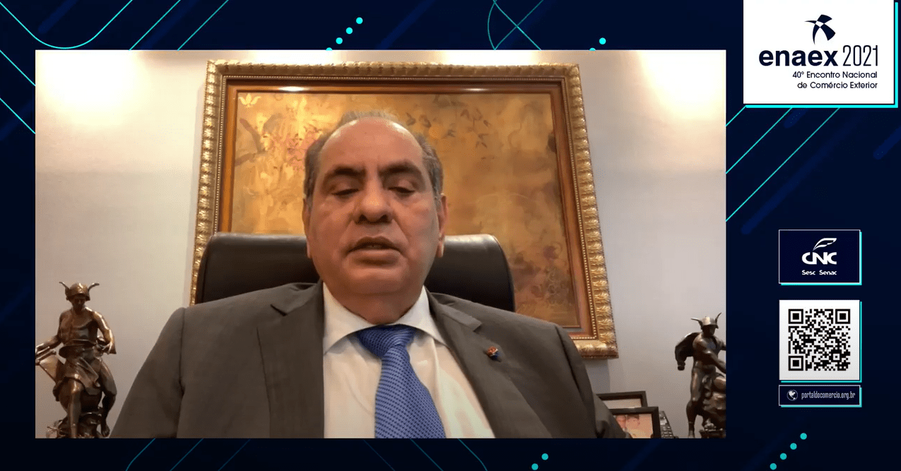 O presidente da AEB, José Augusto de Castro, enalteceu o apoio do CNC ao Enaex 2021 e ressaltou a importância dessa parceria no projeto de expansão das exportações do comércio brasileiro. Em seu pronunciamento, ele chamou a atenção para os excelentes resultados das exportações deste ano e para o cenário de novas oportunidades para o Brasil, em meio à crise de abastecimento e de energia, sobretudo na China.