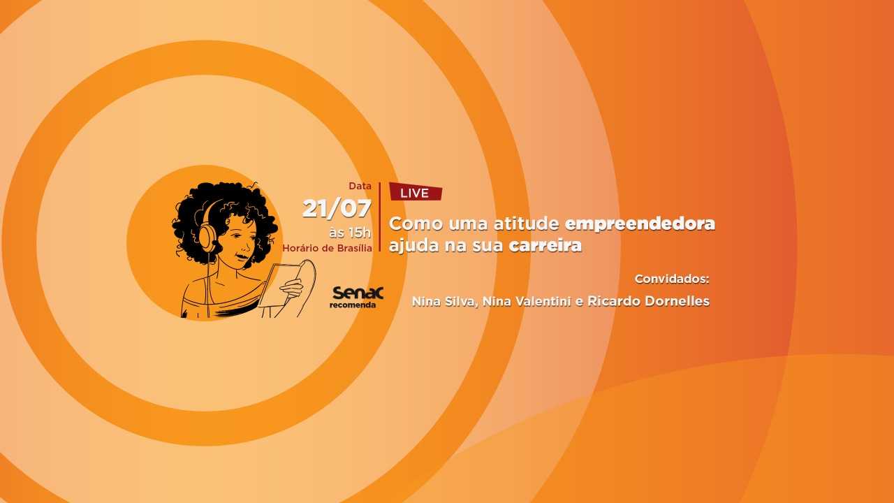 Acontece no dia 21 de julho, quinta-feira, às 13h horário do Acre (15h horário de Brasília), no canal oficial do Senac no Youtube (www.youtube.com/SenacRecomenda) uma live com Nina Silva, Nina Valentini e Ricardo Dornelles. Estas três personalidades que entendem de sucesso vão bater um papo sobre empreendedorismo, protagonismo, inovação e criatividade.